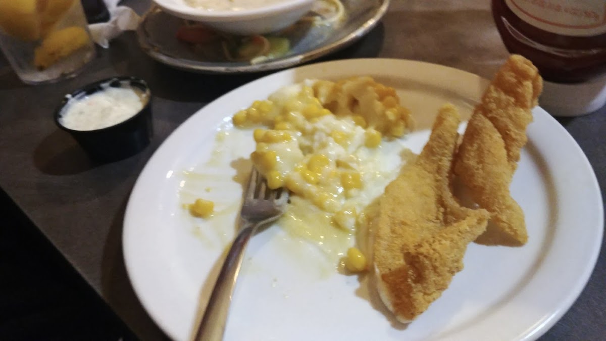 Mashed Potatoes Fried Catfish and Cream Style Corn